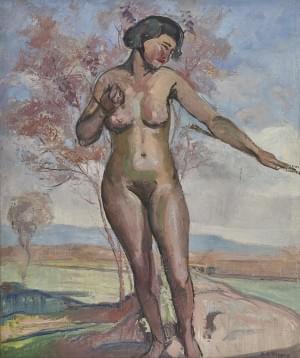 Etude de nu debout dans un paysage, huile sur toile, signée, 65x...