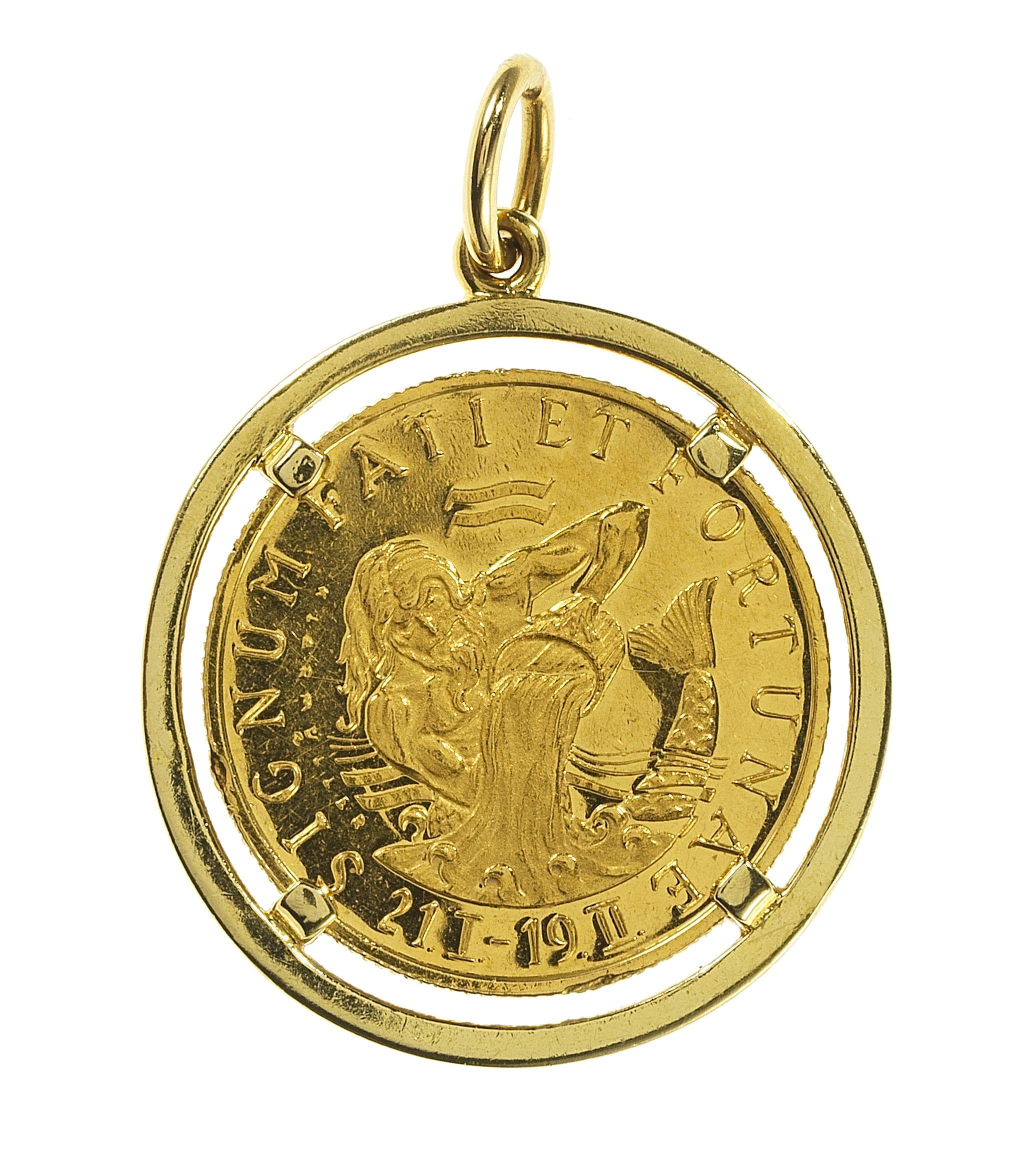 3207. Médaille sertie de deux pièces du signe des Gémeaux et du Verseau