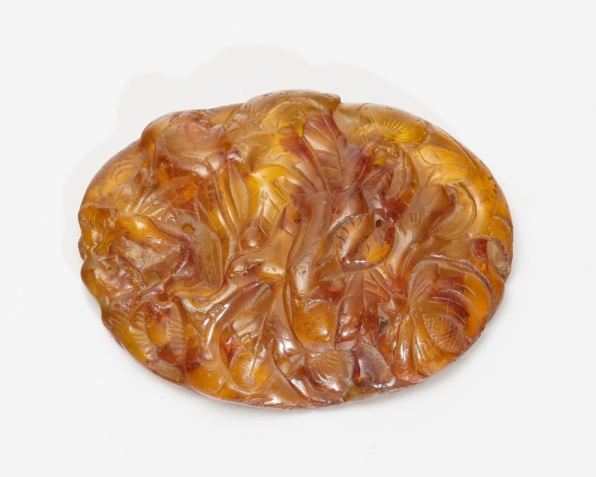 Porcelaine émaillée blanc à décor en relief d'un perroquet sur d...