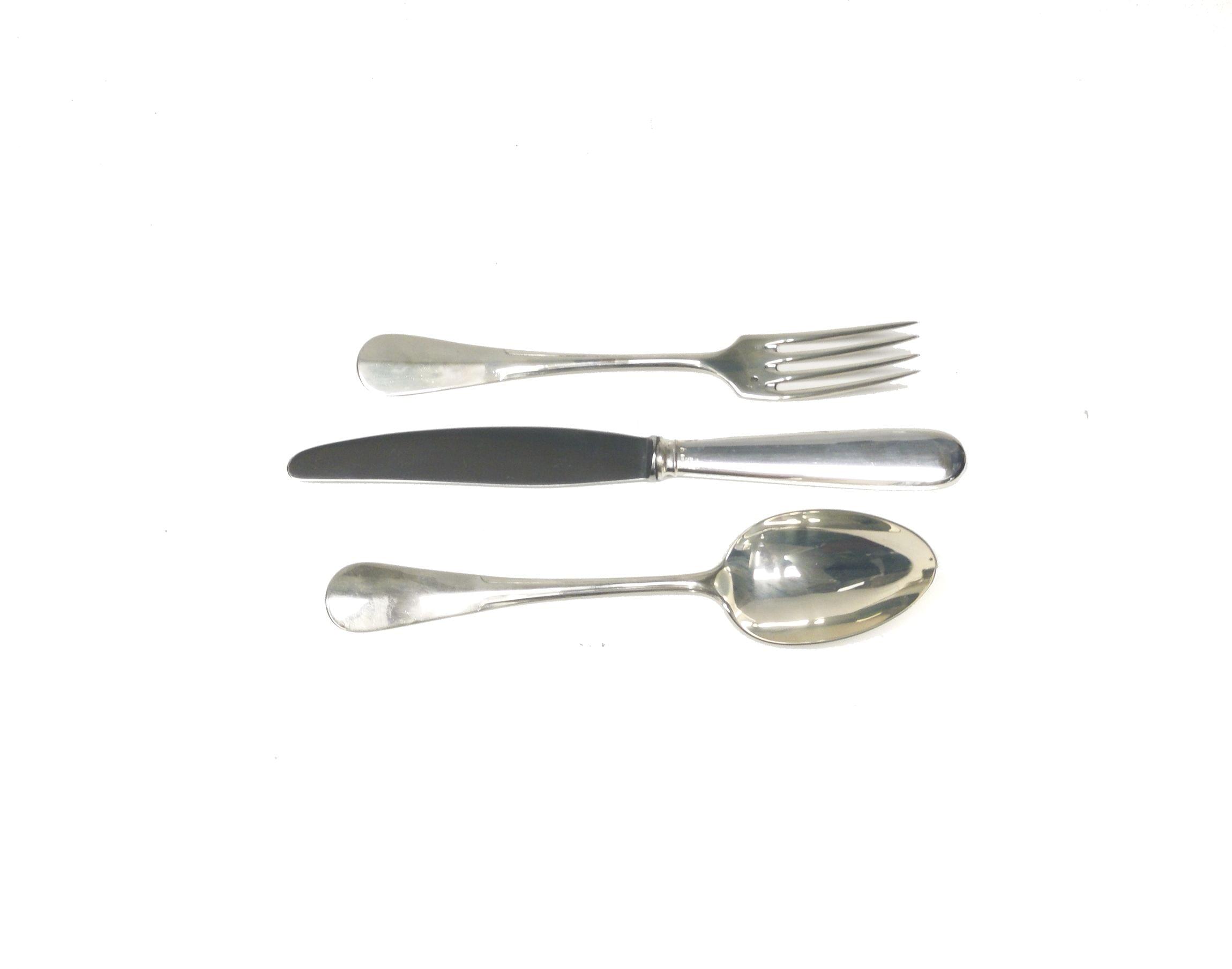 Métal argenté, comprenant: 12 fourchettes, 12 couteaux et 12 cui...