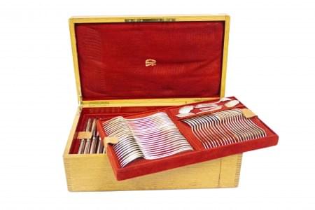 Cheurier, Paris, argent, comprenant: 12 fourchettes, 12 cuillères et 12 couteaux à dîner, 12 fourchettes, 12 cuillères et 12 couteaux à entremets,