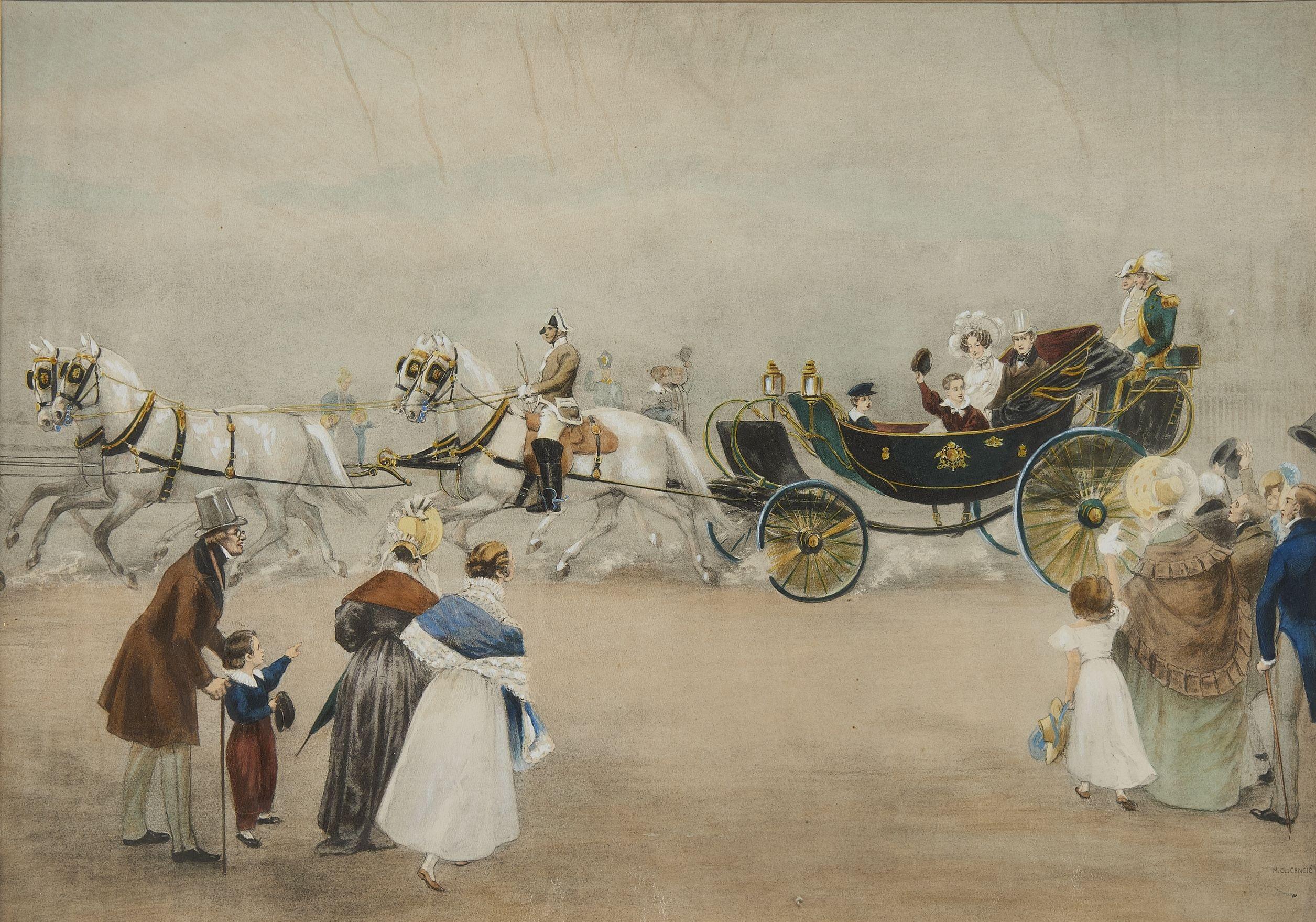 L'archiduc Franz-Carl et l'Archiduchesse Sophie de Habsburg-Autriche avec leurs enfants, (Ihre K. K. Hoheiten Erzherz. Franz Carl, Erzherzogin Sophie mit ihren Kindern), lithographie aquarellée, 43x61 cm. Provenance: collection Pernet-Villaverde