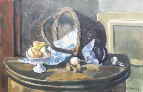 Femme au pichet rouge, huile sur toile, signée et datée 43, 91x6...