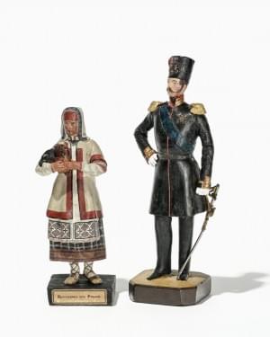 Deux figurines en papier bouilli et laqué, Russie, XIXe s, H 37...