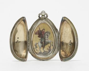 165. Œuf de Pâques ouvrant sur une icône de Saint-Georges terrassant...