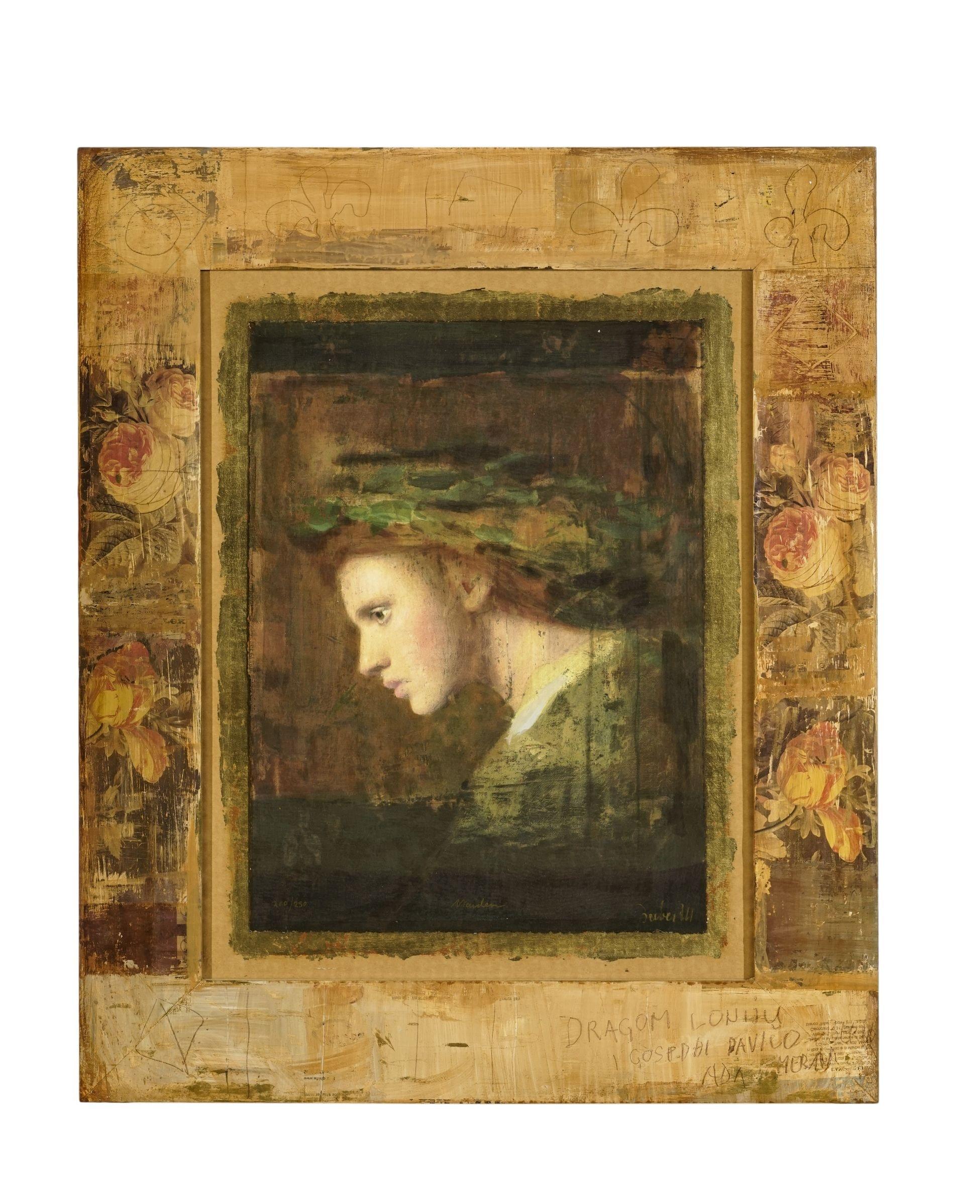 Jeune femme à la coiffe, huile sur toile, signée, 31x40 cm
