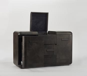Anses à têtes de félins, grès à couverte monochrome turquoise ta...