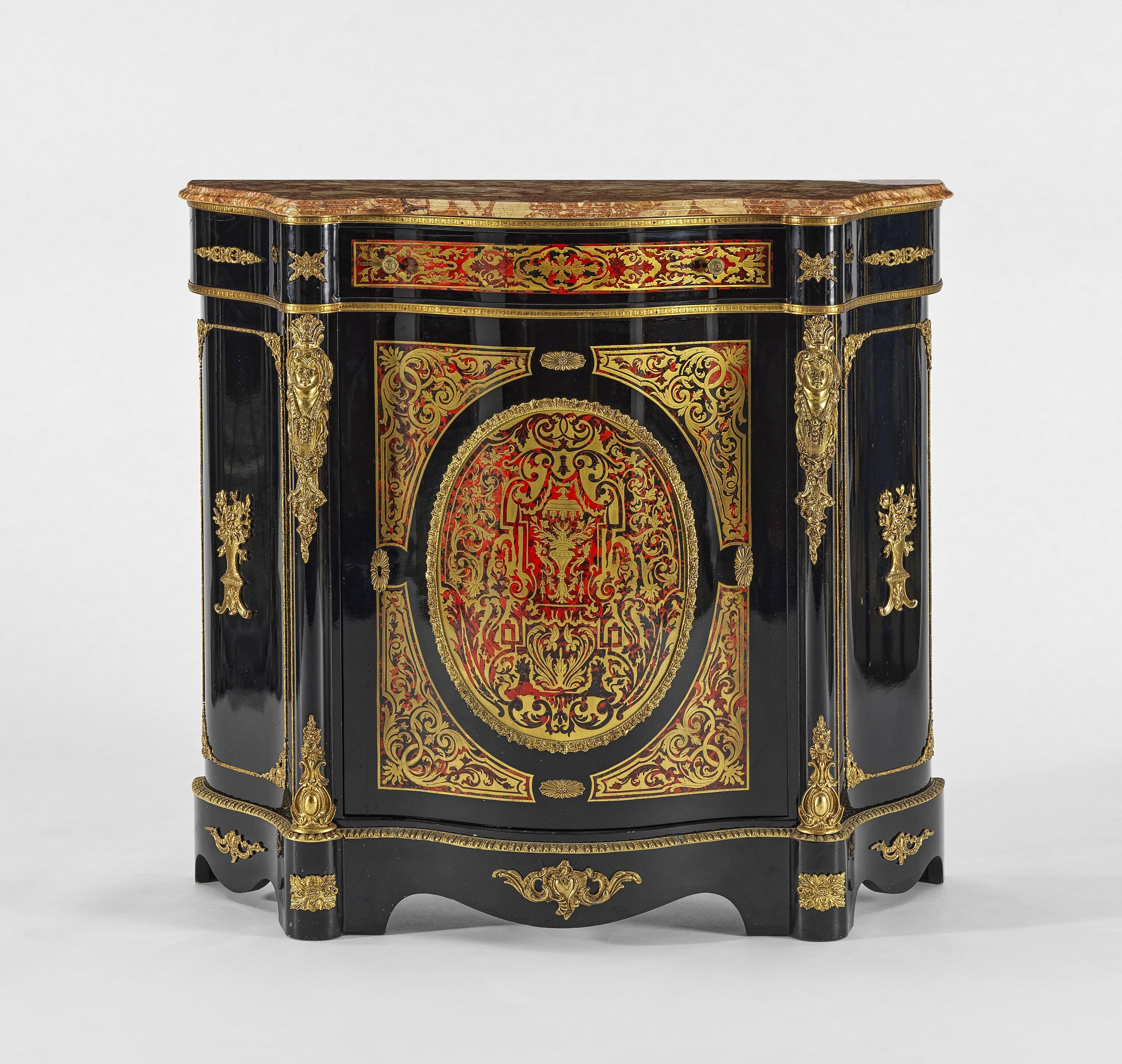 Bois noirci, laiton, bronze doré, écailles, 100x105x40 cm