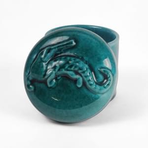 Vide-poche, céramique émaillée verte, signée Lifas, L 14 cm