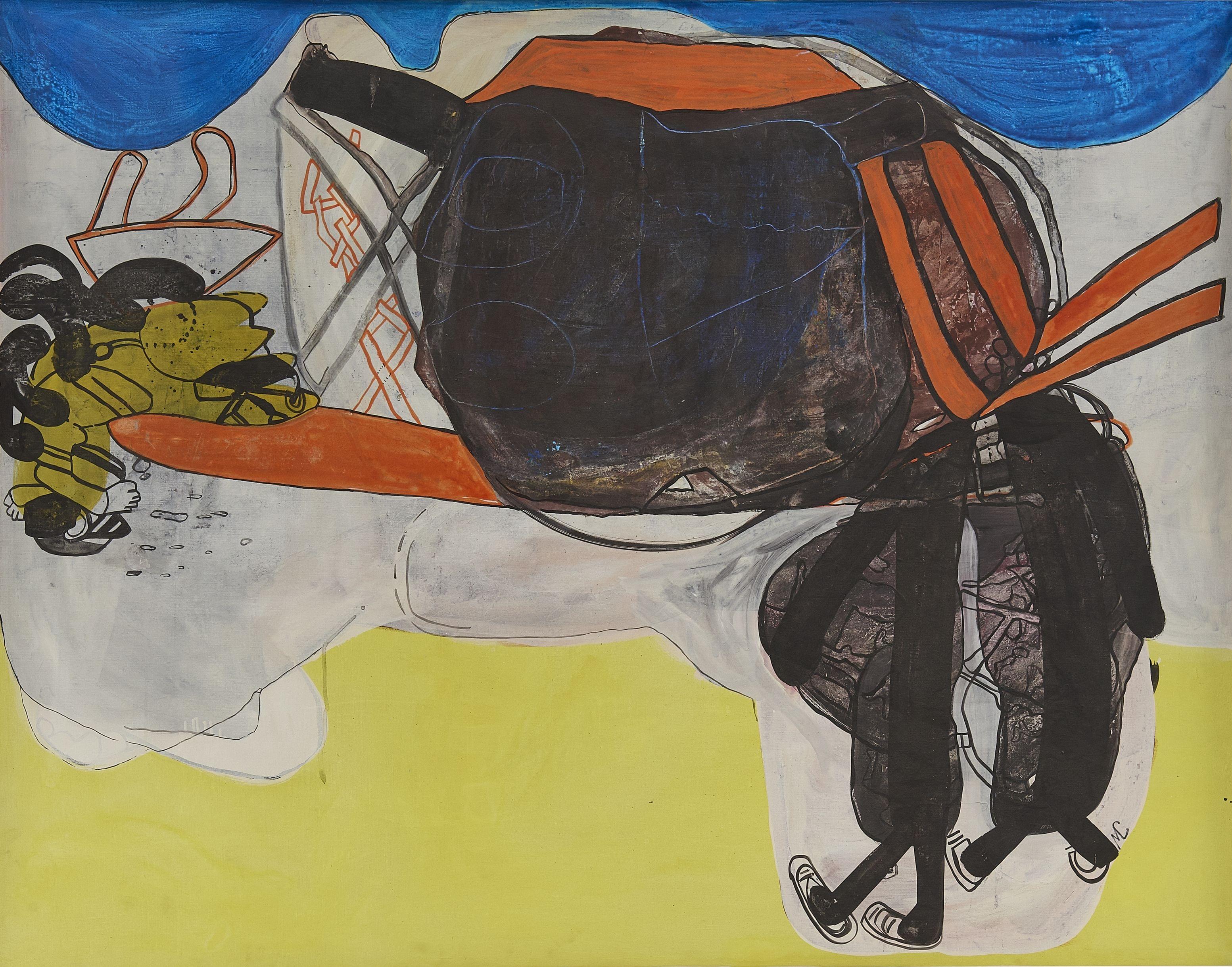 Abstraction sur fond noir, acrylique sur toile, 110x135 cm