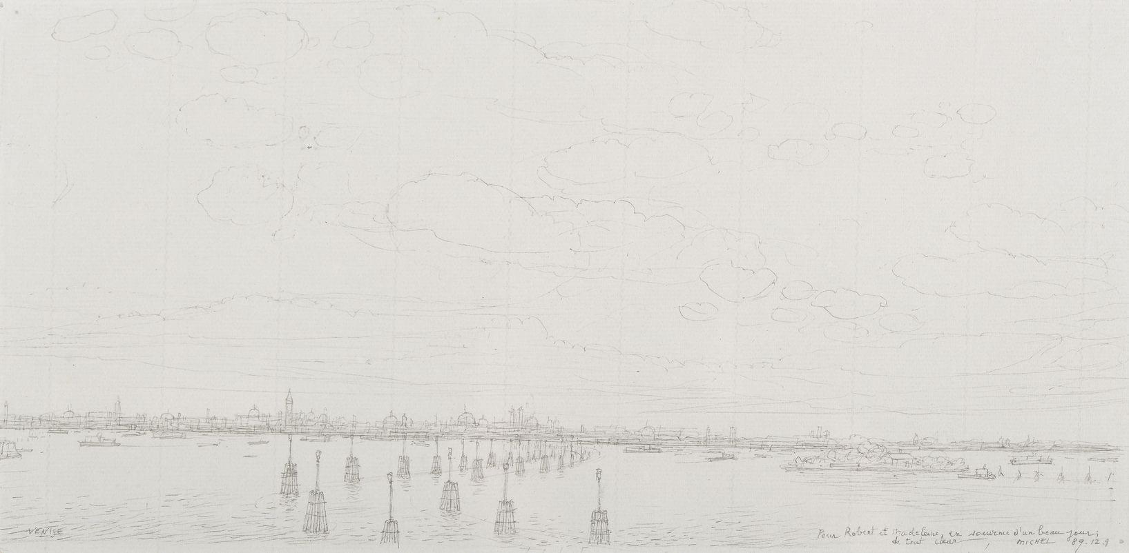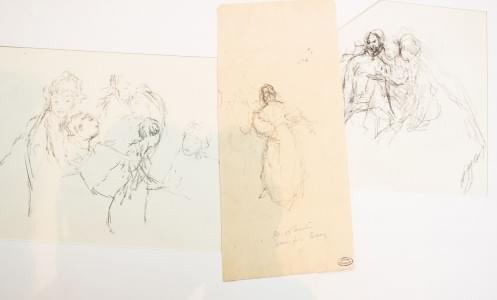 Trompe-l'œil d'aquarelles dans le goût du XVIIIe sur fond de boi...