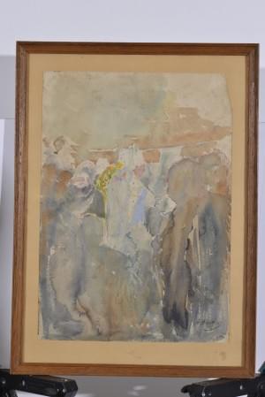 Procession religieuse, aquarelle sur papier, signée, 54x38 cm