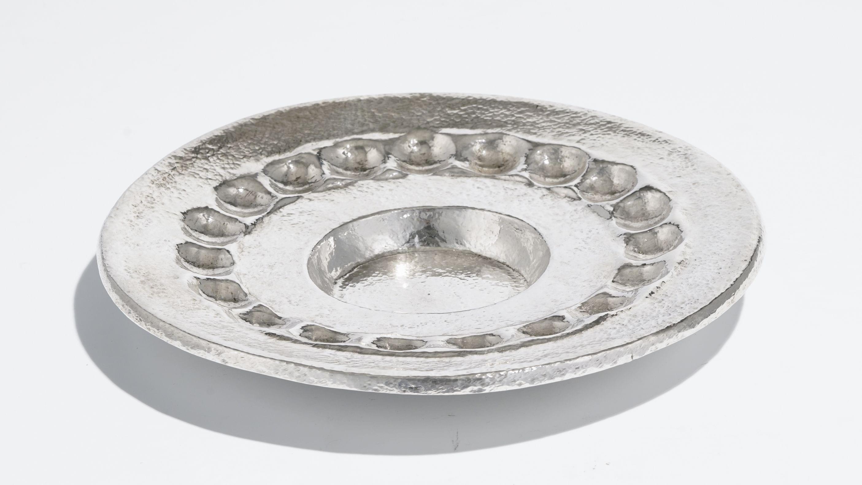 Argent 925, D 29 cm, 606 g. Orfèvre né dans l'Empire ottoman qu'il fuit s'établir en Suisse, cousin du fondateur de la maison ialienne Bulgari.