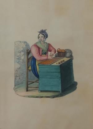 Marchande de rue et pêcheur napolitains, deux aquarelles sur papier, signées, 30x22cm