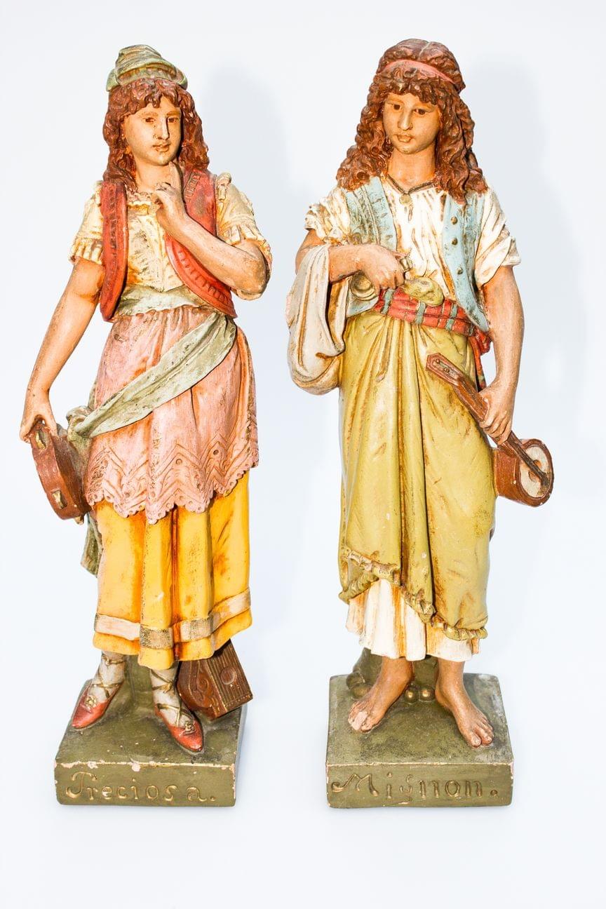 Paire de statuettes, plâtre peint, Allemagne ou Autriche circa 1900, H 38 cm