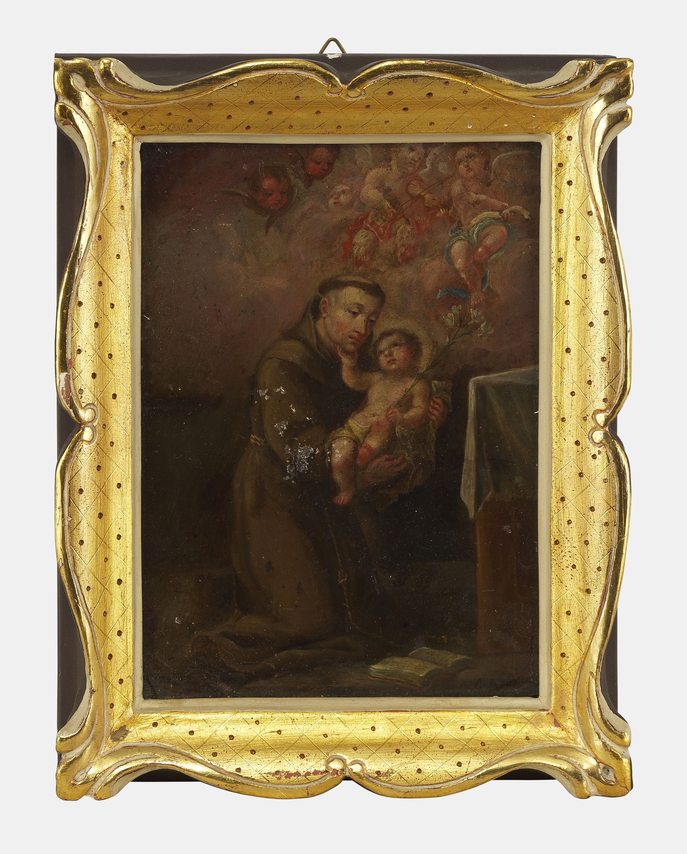 Saint Antoine de Padoue, huile sur cuivre, signée, 13x9 cm