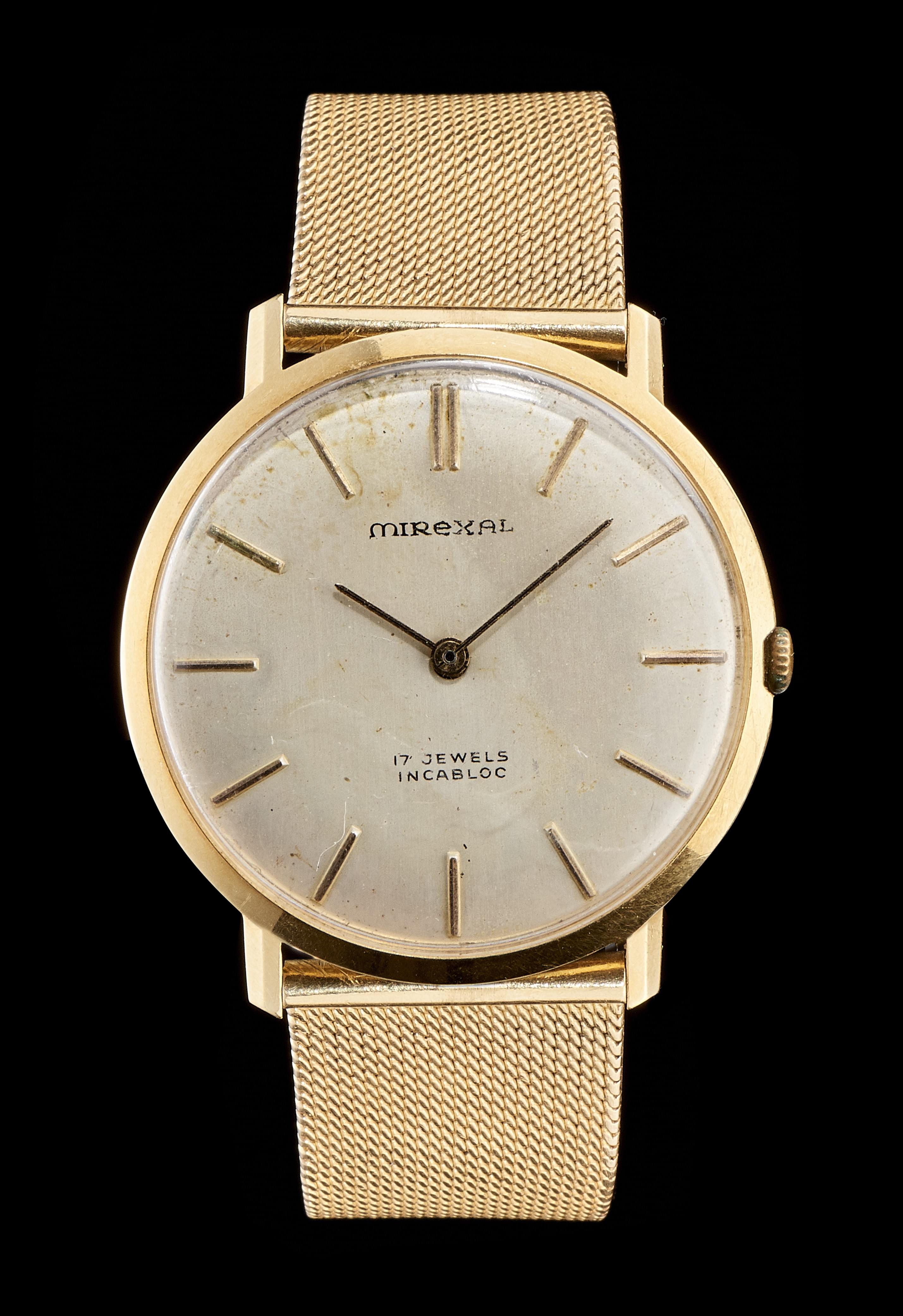 Cadran gris, index bâtons et aiguilles dorés, or 750, D 33 mm, poids brut 53 g