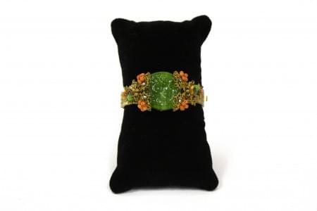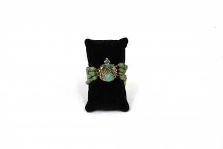 3112. Miriam Haskel, lot comprenant deux bracelets, l'un jonc ouvrant et l'autre à quatre rangs de perles de verre, et trois paires de clips d'oreilles sertis de diverses pierres d'imitation et en pâte de verre