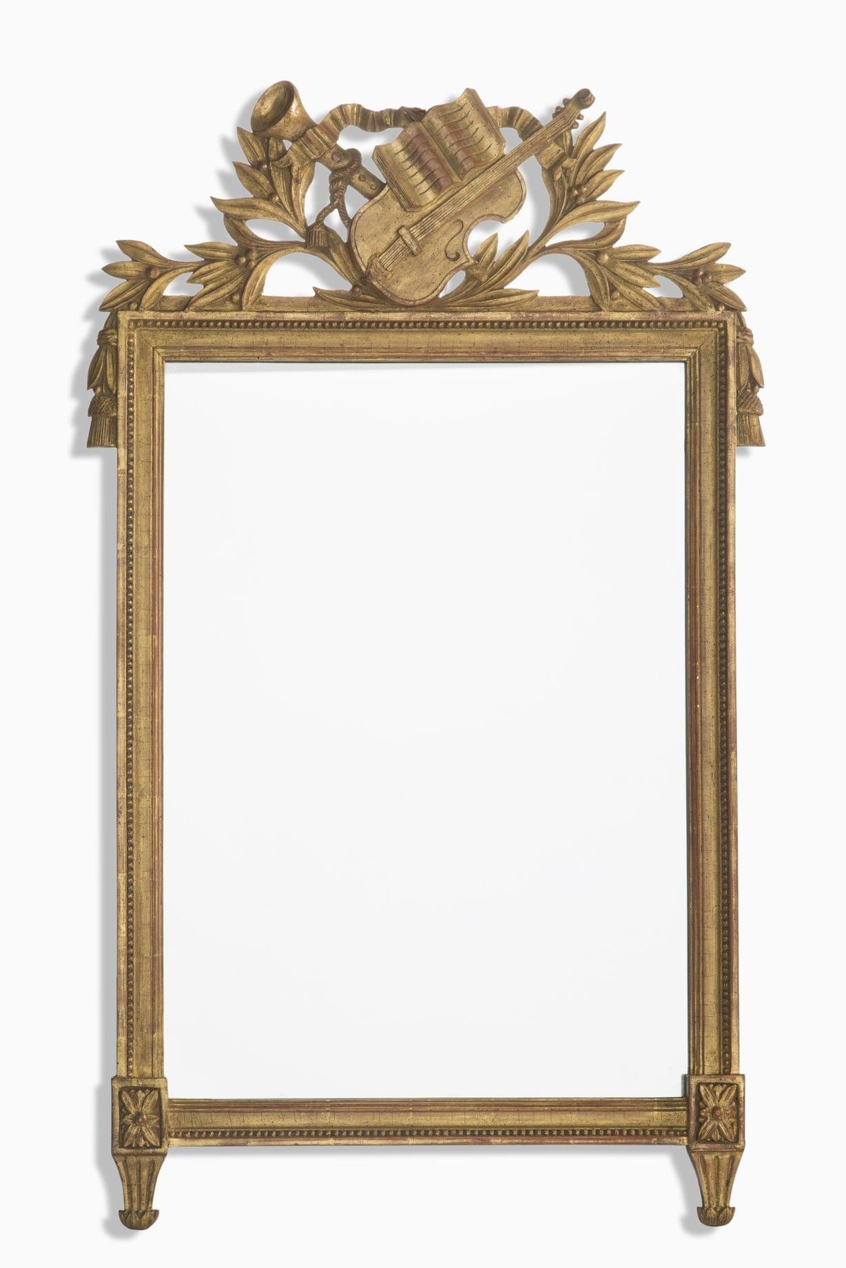 Bois sculpté et doré à décor d'un trophée de musique, 103x56 cm