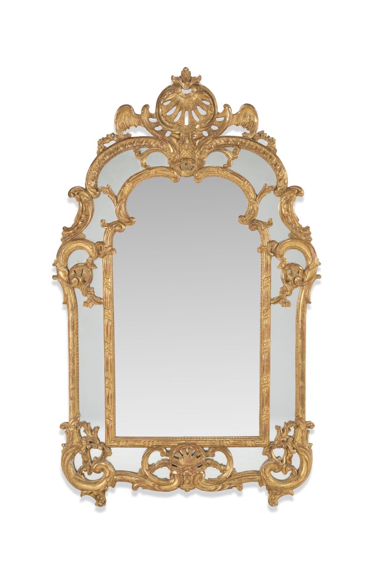 Bois sculpté et doré, l'une à décor d'un dragon, l'autre d'un bl...