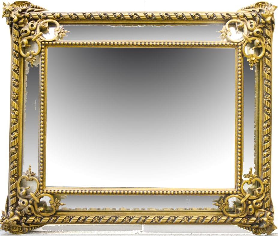 Bois stuqué et doré, glaces biseautées, 102x91 cm