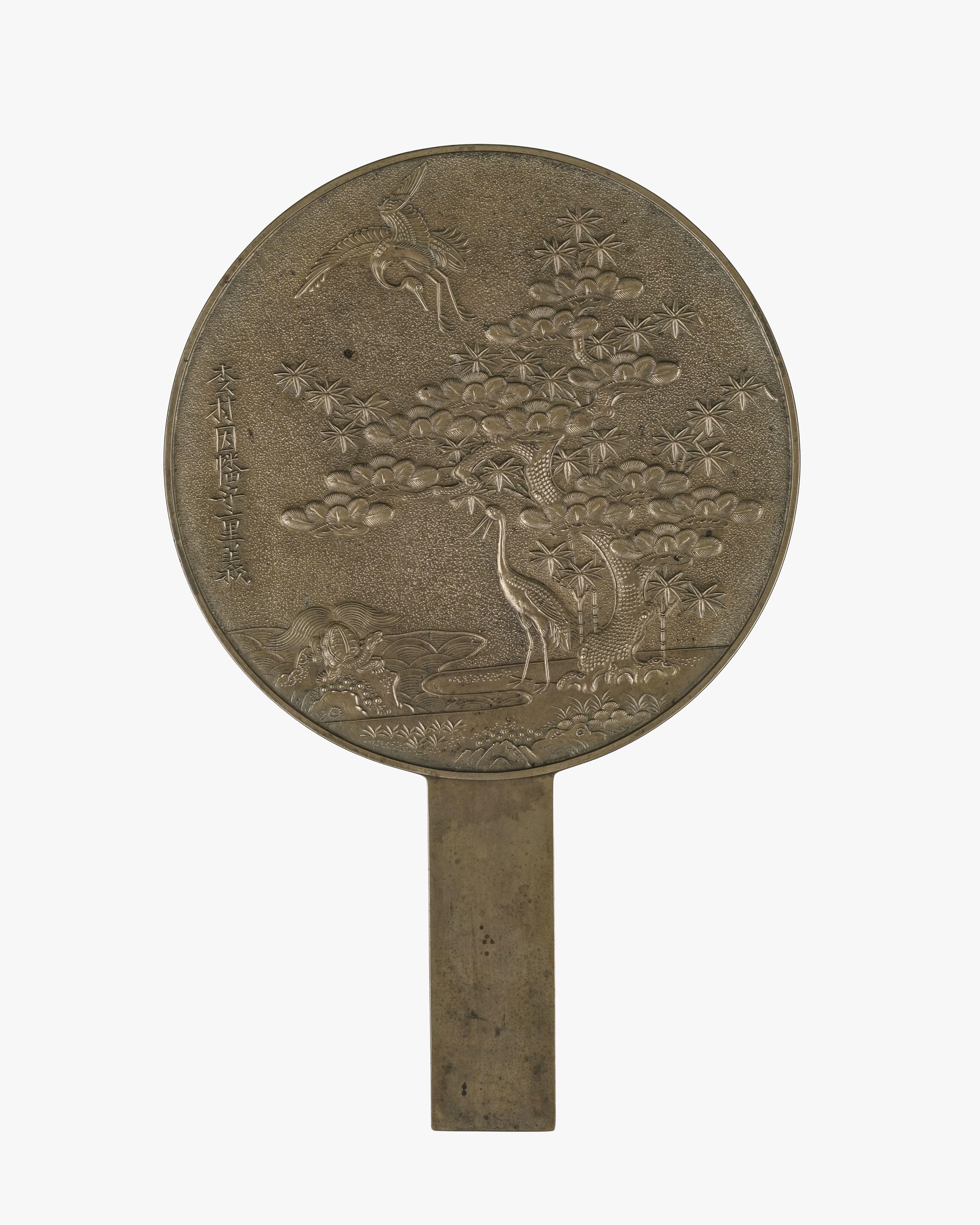 Bronze argenté à décor de pins, bambous et animaux, H 28,5 cm
