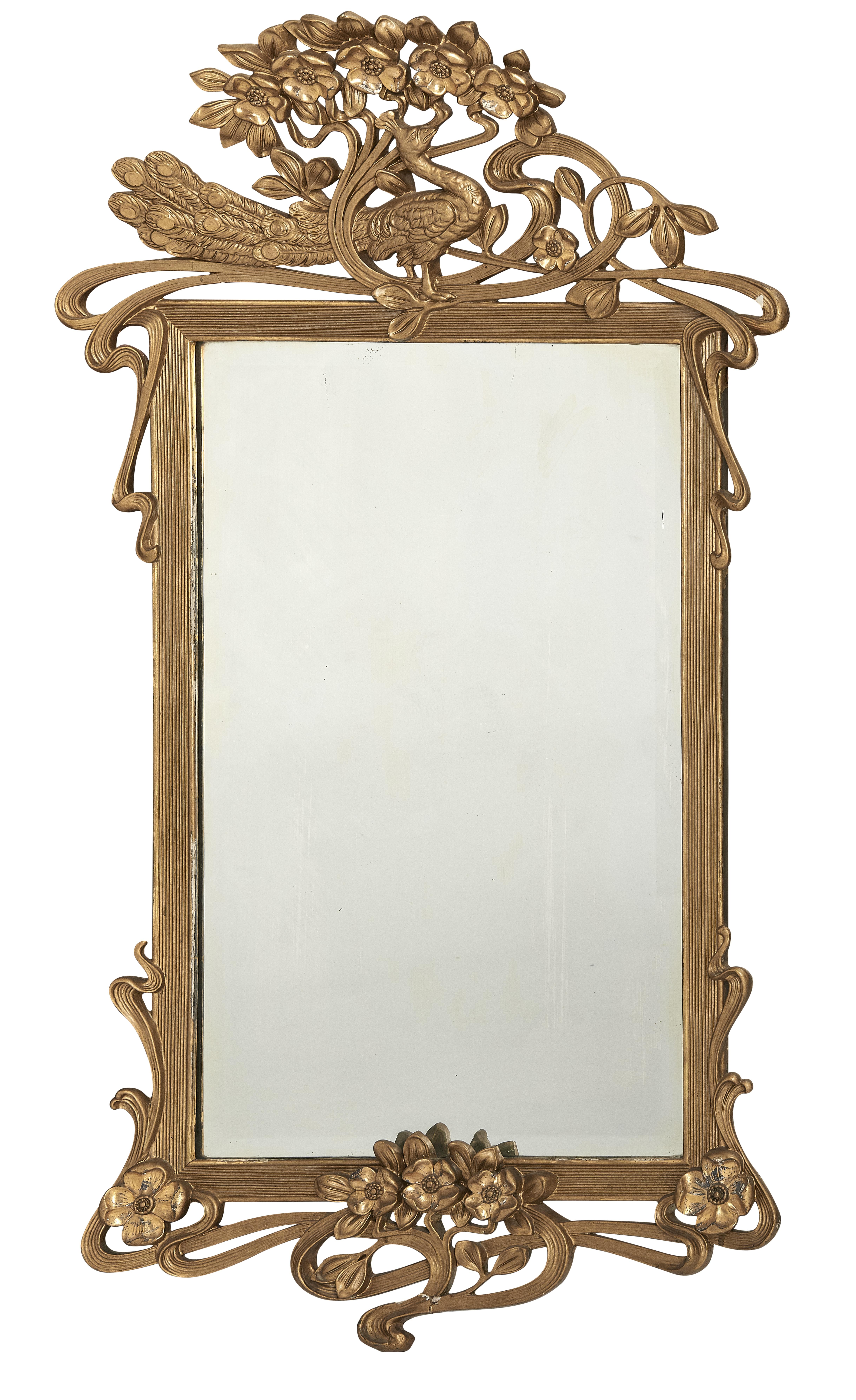 Bois stuqué et doré à décor d'un paon, 123x65 cm