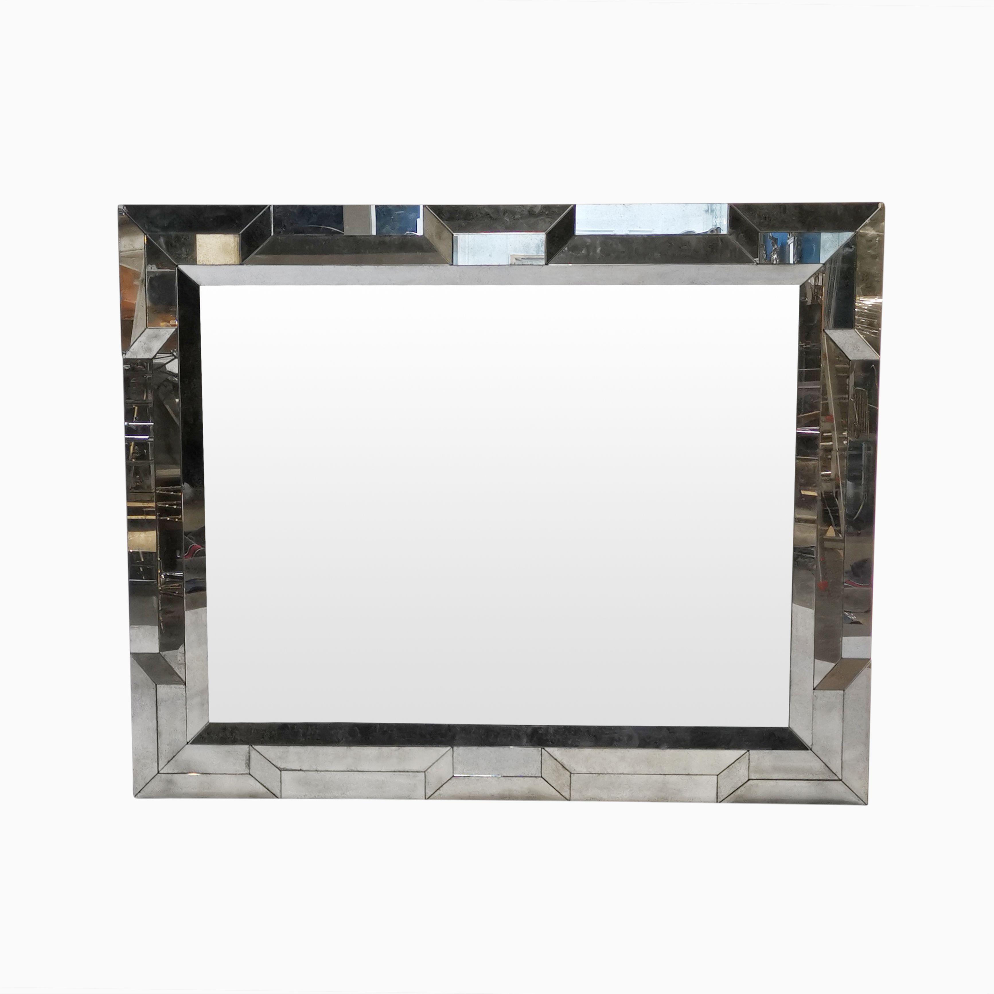 Encadrement de plaquettes de verre facetté à effet vieilli, 150x122 cm