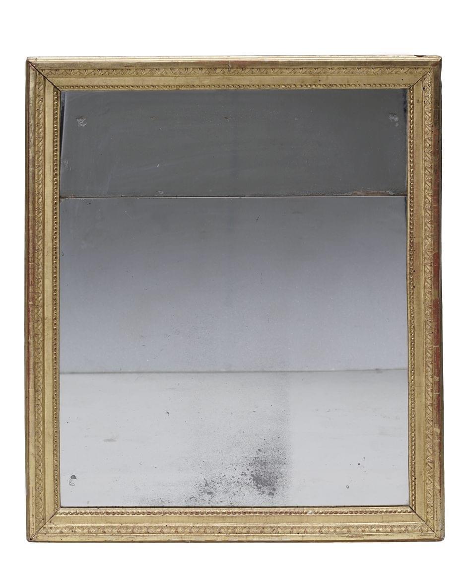 Bois sculpté doré à décor d'oves et perlettes, glace au mercure, 79x66 cm