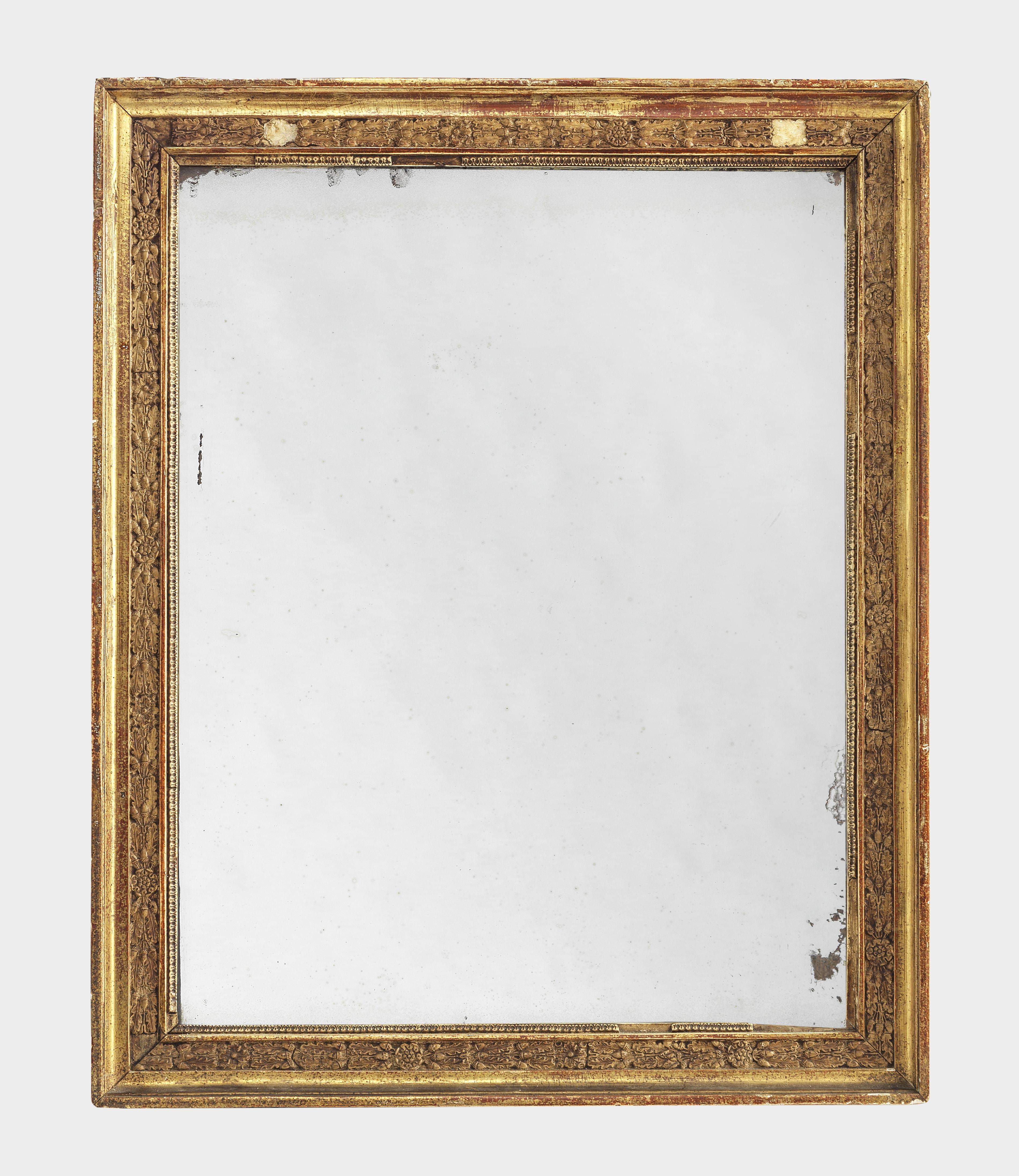 Bois stuqué doré, à motif de frise de feuilles de chêne et glands, glace au mercure, 65x52cm
