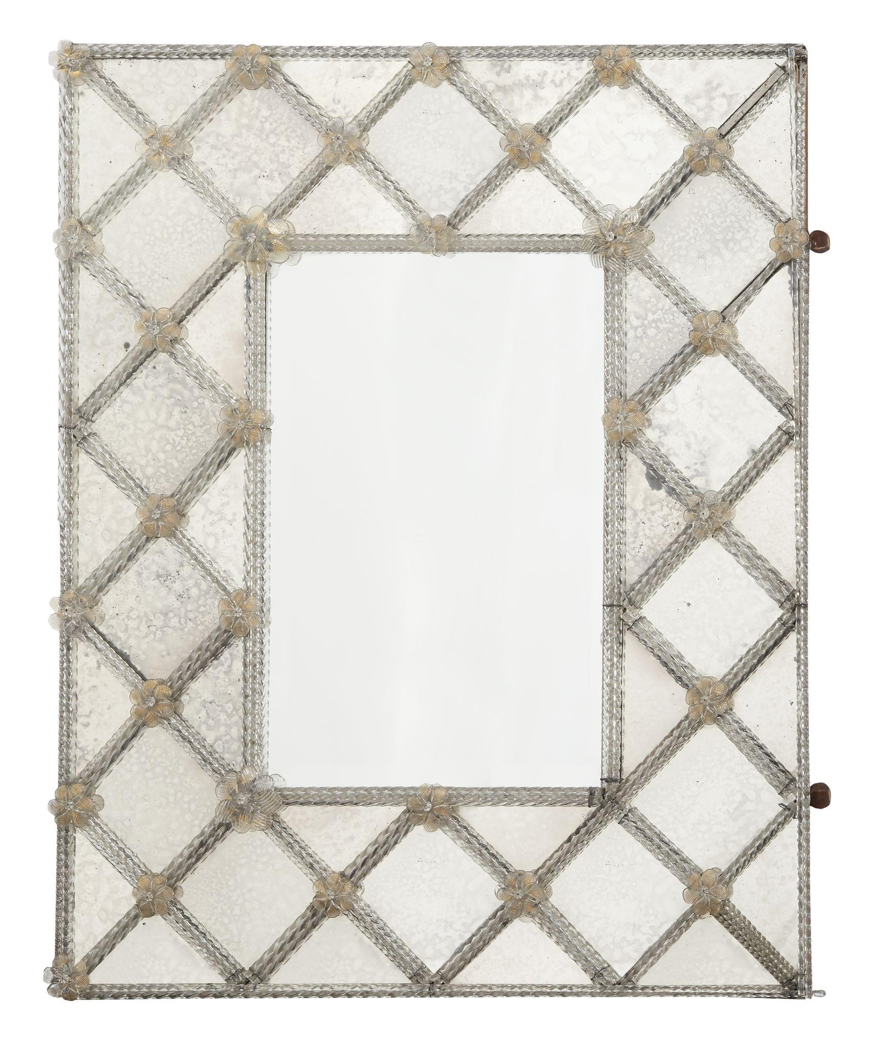 Miroir, verre torsadé et fleurettes figurant un treillage, 101x80 cm