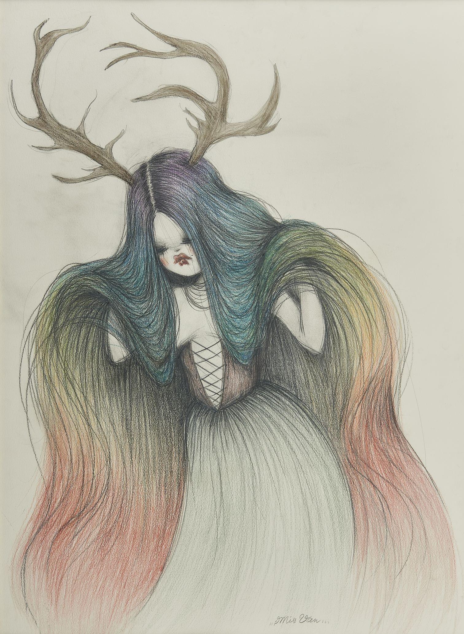 Portrait de femme, reproduction contresignée au crayon bleu par...