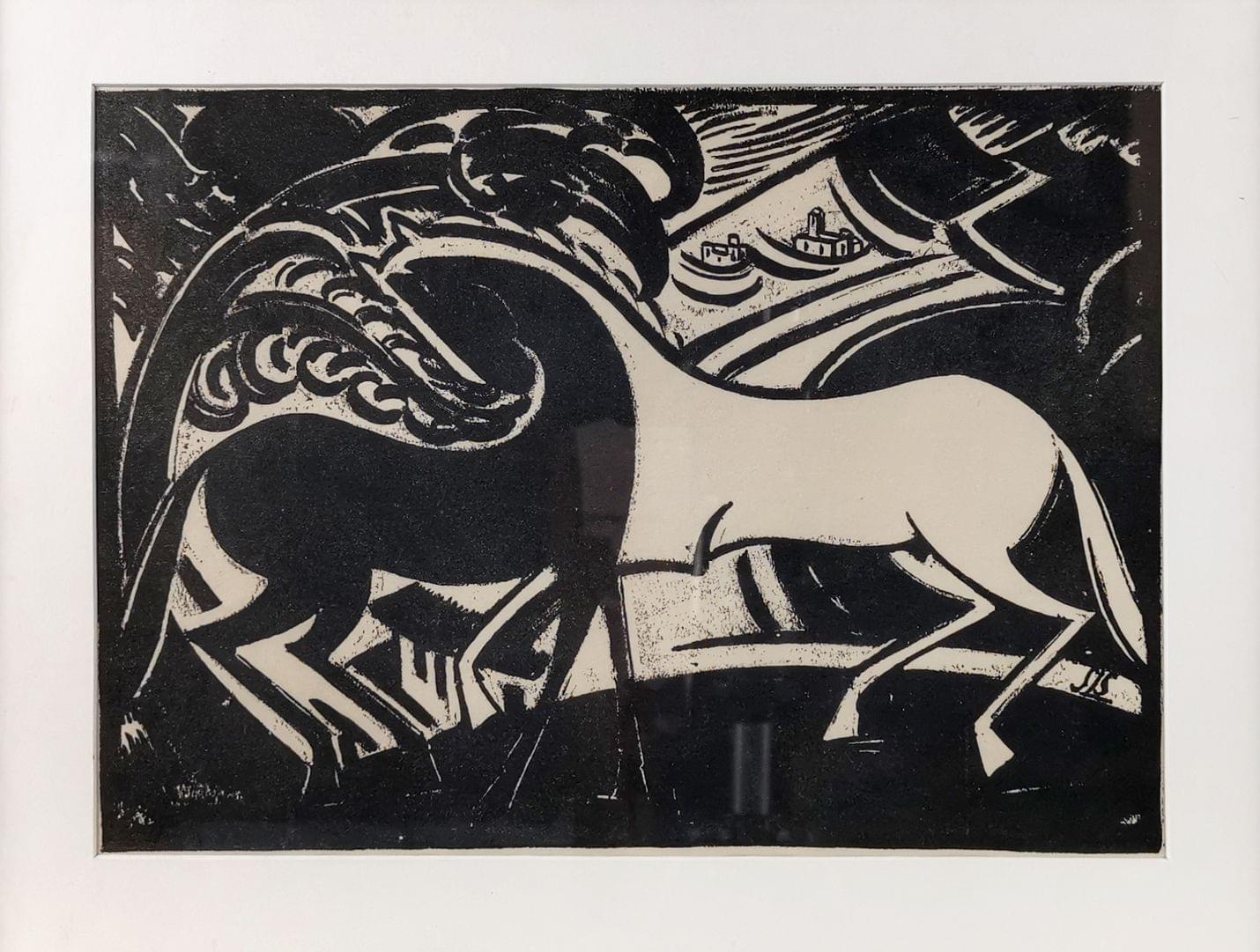 Chevaux, bois gravé, monogrammé dans la planche, signé et daté 1929 au dos, 22x30 cm