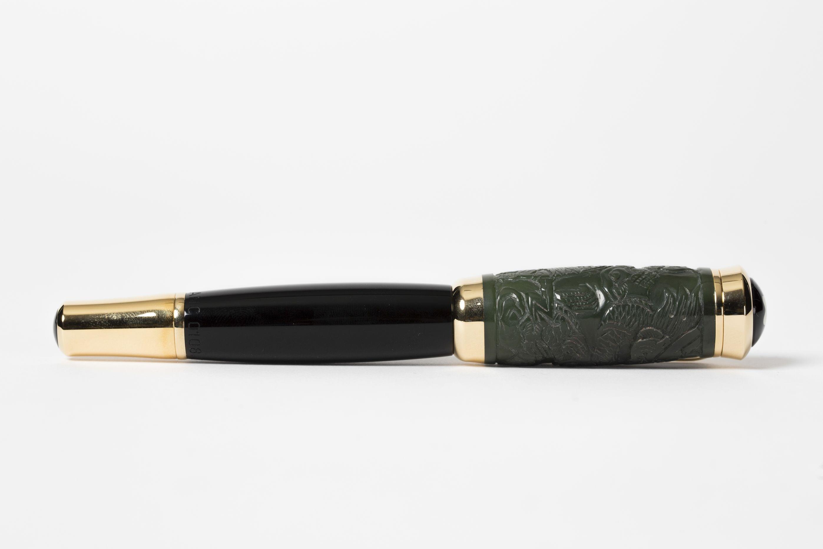 Résine noire et bouchon en jade à décor de dragons, éd. limitée 108/2002, dans son écrin