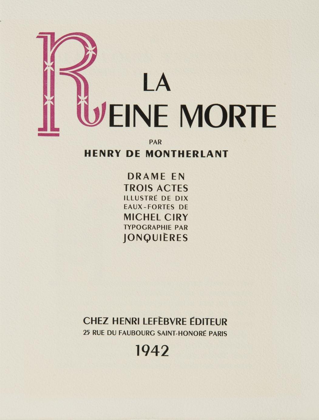 181. MONTHERLANT: La reine morte. Michel Ciry, Paris, Lefèbvre, 1942;