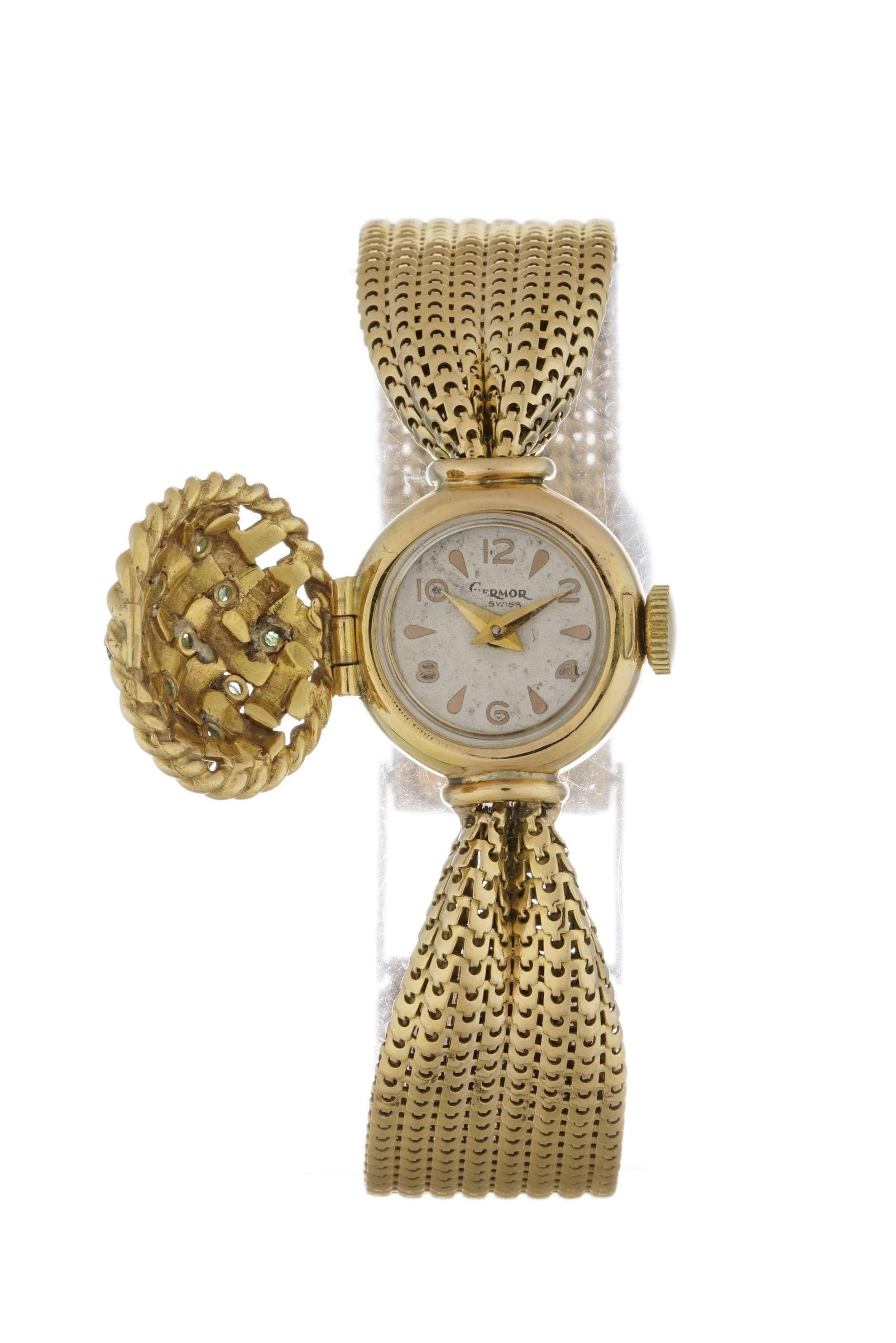 Cadran blanc, aiguilles et chiffres arabes dorés, or 750, D 15 mm, poids brut 35 g