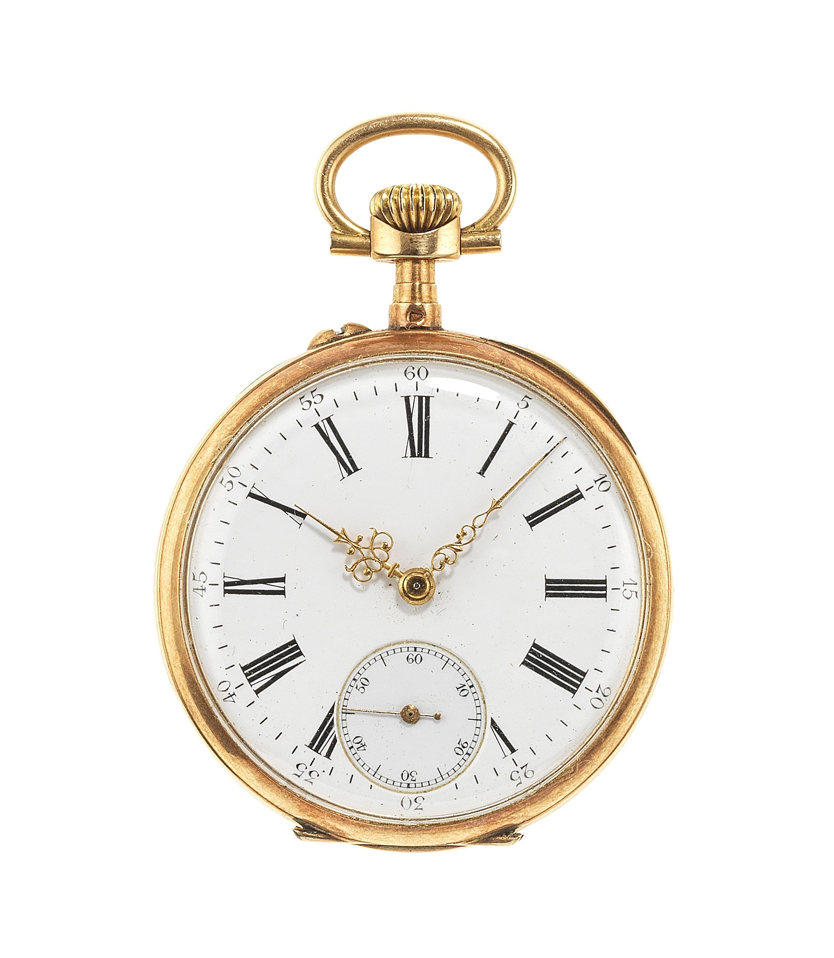 Cadran émaillé blanc, aiguilles dorées, chiffres romains noirs, or 750, D 42 mm, poids brut 56 g