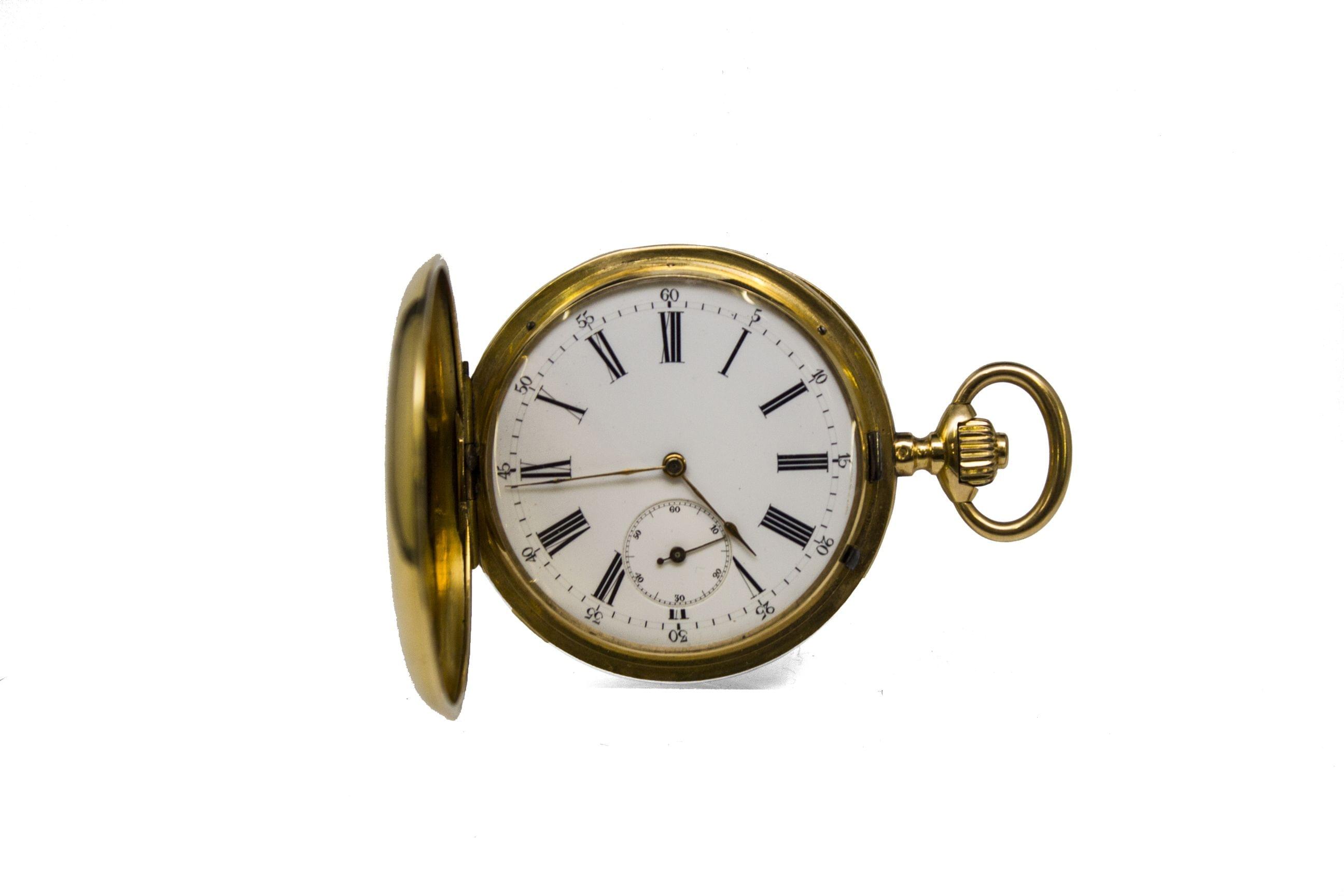 Cadran blanc émaillé, aiguilles dorées, chiffres romains bleus,...