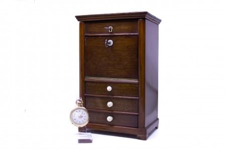 3118. Montre de poche guillochée à décor d'un bouquet et gravée Louise Calame dans sa layette d'horloger miniature