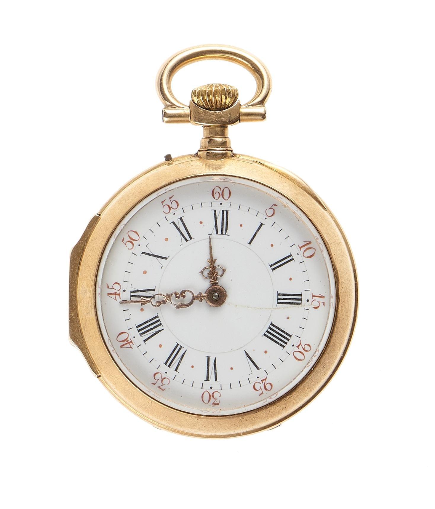 Cadran émaillé blanc, aiguilles dorées, chiffres romains noirs, or 750, D 30 mm, poids brut 30 g