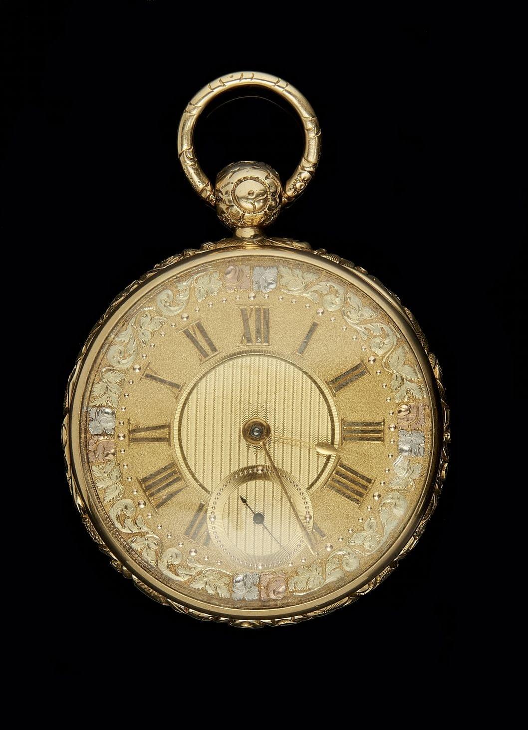 Cadran gris, aiguilles et index bâtons noirs, or gris 750, 26x21...