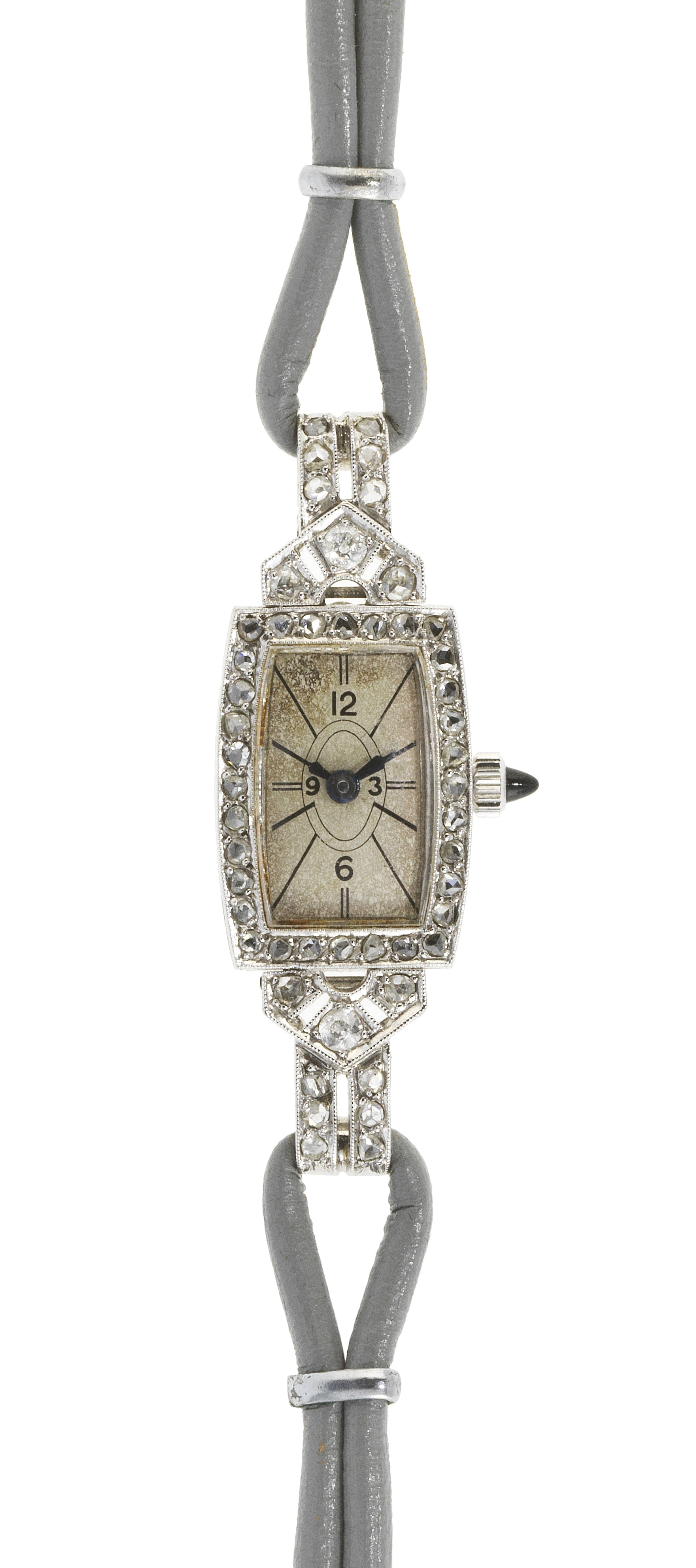 Cadran blanc retenant sept diamants mobiles, aiguilles bleuies,...