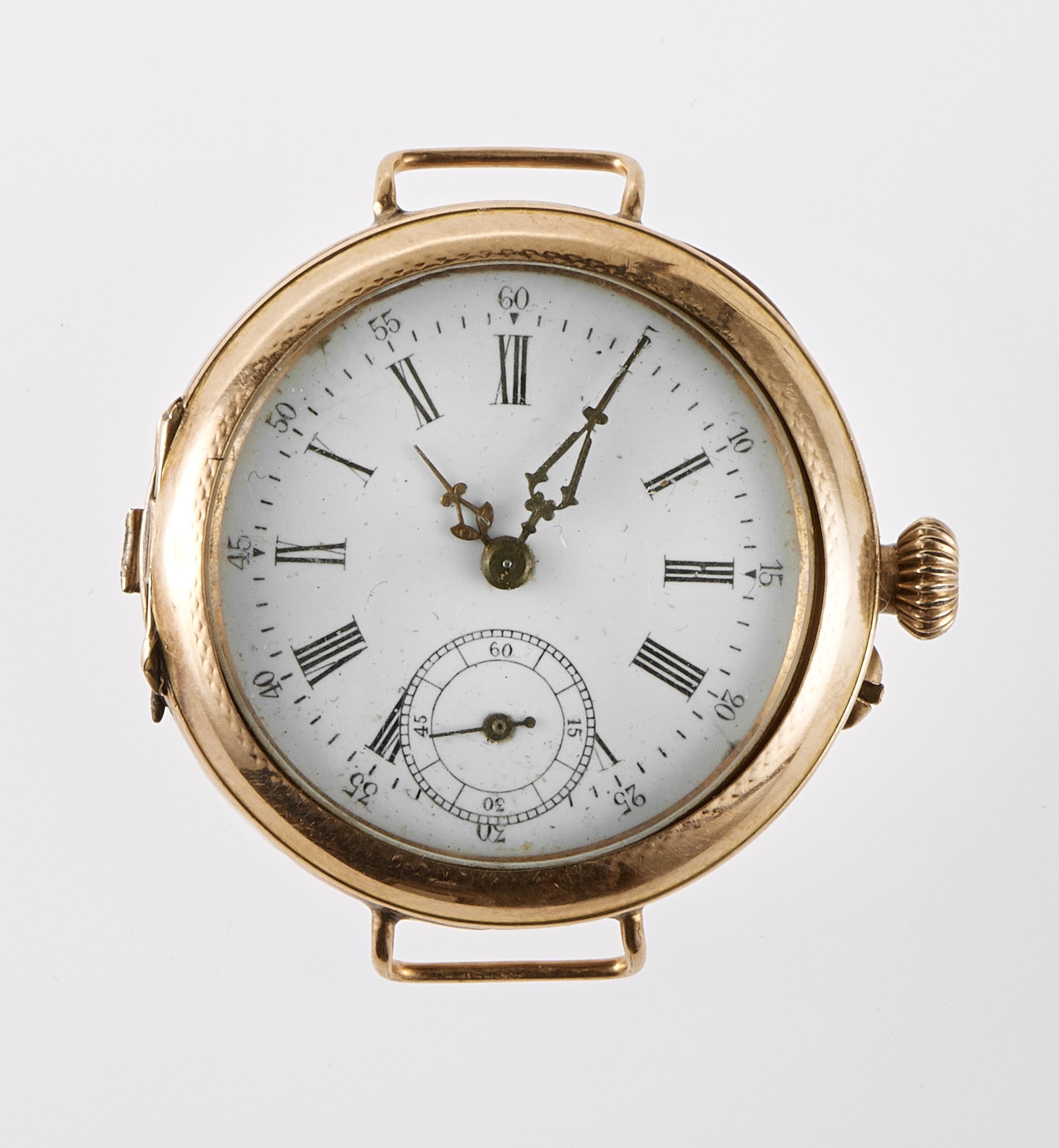 Cadran blanc, aiguilles argentées, chiffres romains noirs, or 585, D 33 mm, poids brut 25 g