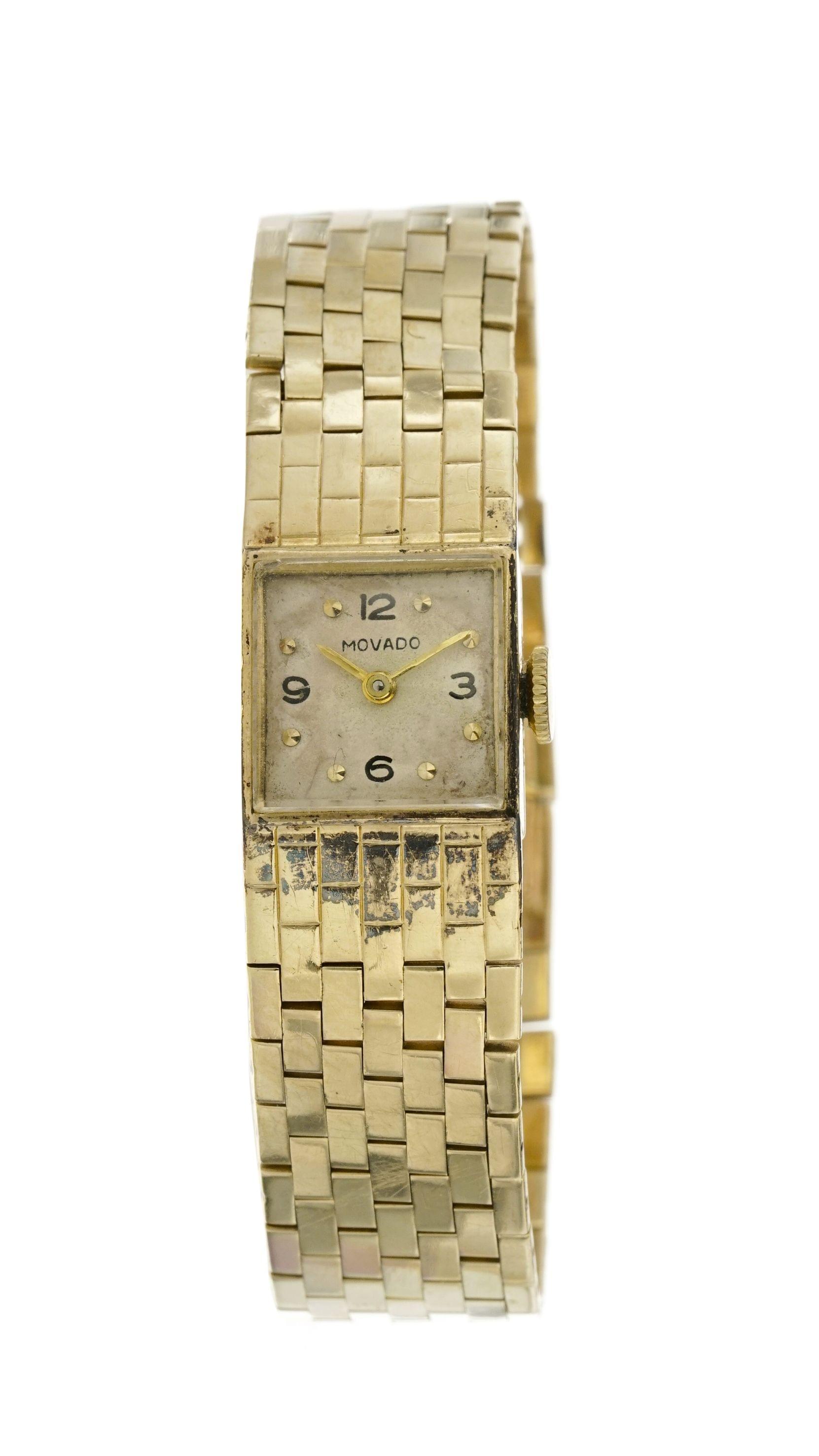 Cadran crème, aiguilles dorées, index à points dorés, chiffres arabes noirs, or 585, poids brut 27