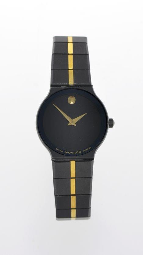 Cadran noir, aiguilles dorées, acier, D 22 mm