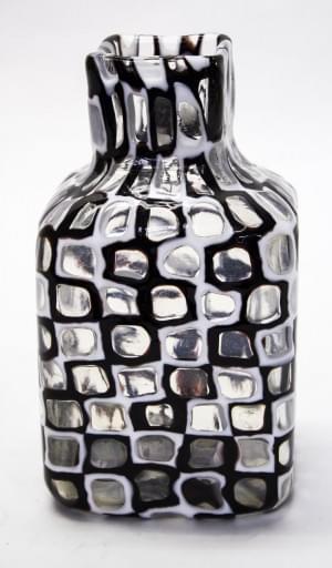 Verre soufflé à décor de damier blancs et noirs, H 19 cm