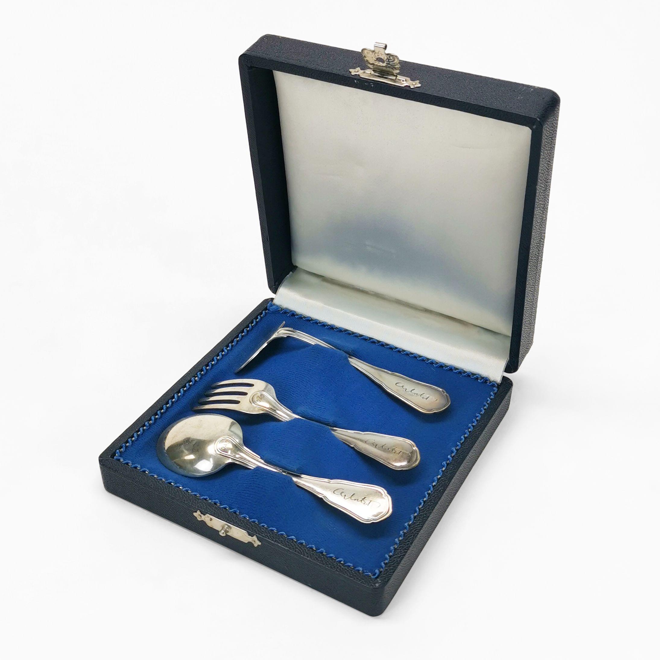 3945. MUSIQUE. Nécessaire de baptême trois pièces en argent Jezler