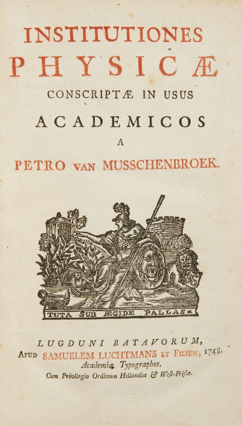 72. MUSSCHENBROEK (Pierre van): Institutiones Physicae conscriptae in usus Academicos. Leyde, Luchtmans, 1748;