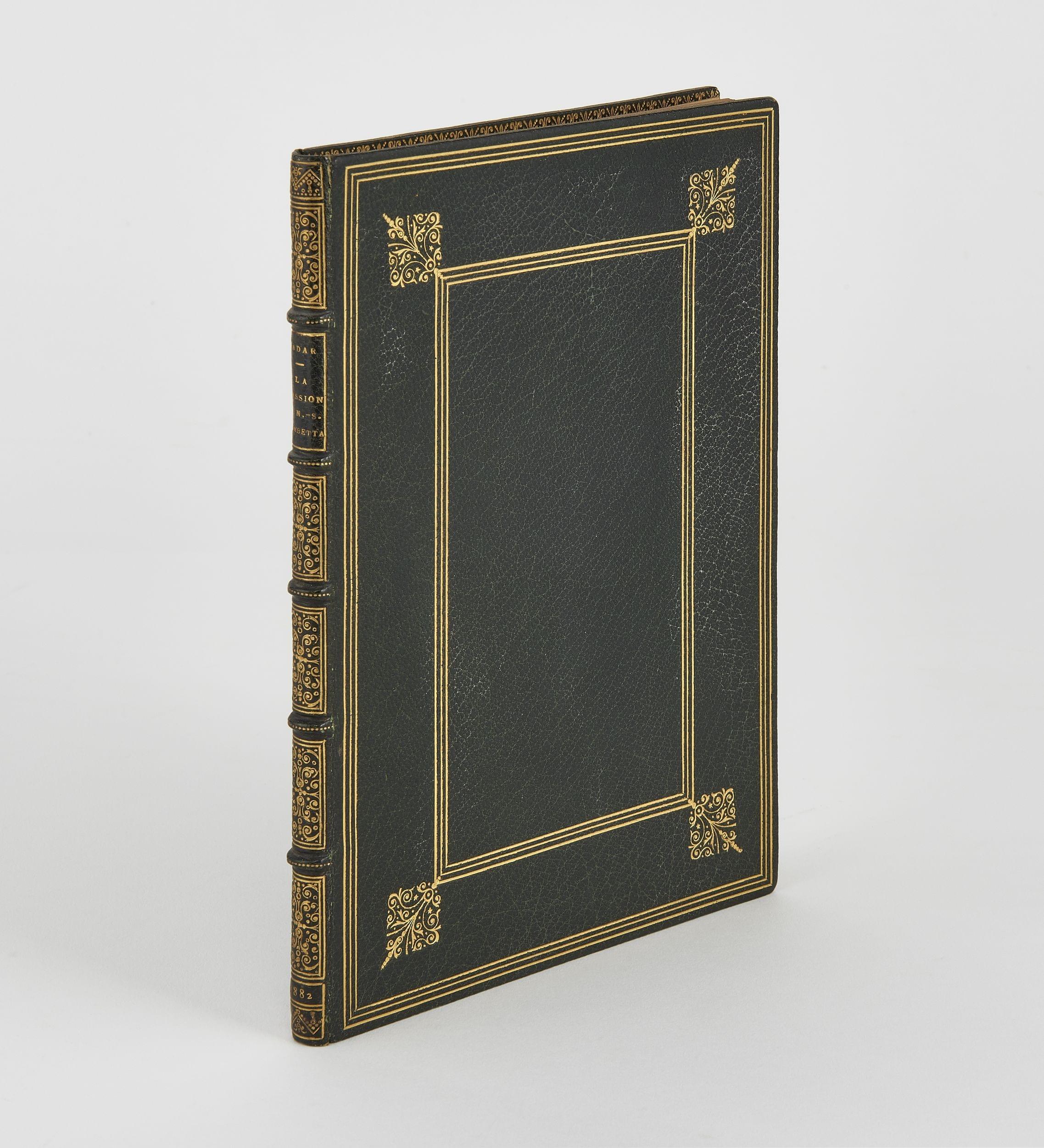 In 12, maroquin vert, dos à nerfs très orné, plats à décor à la Du Seuil, Reliure de PRAT. Ex. num. sur Hollande, signé par Nadar.