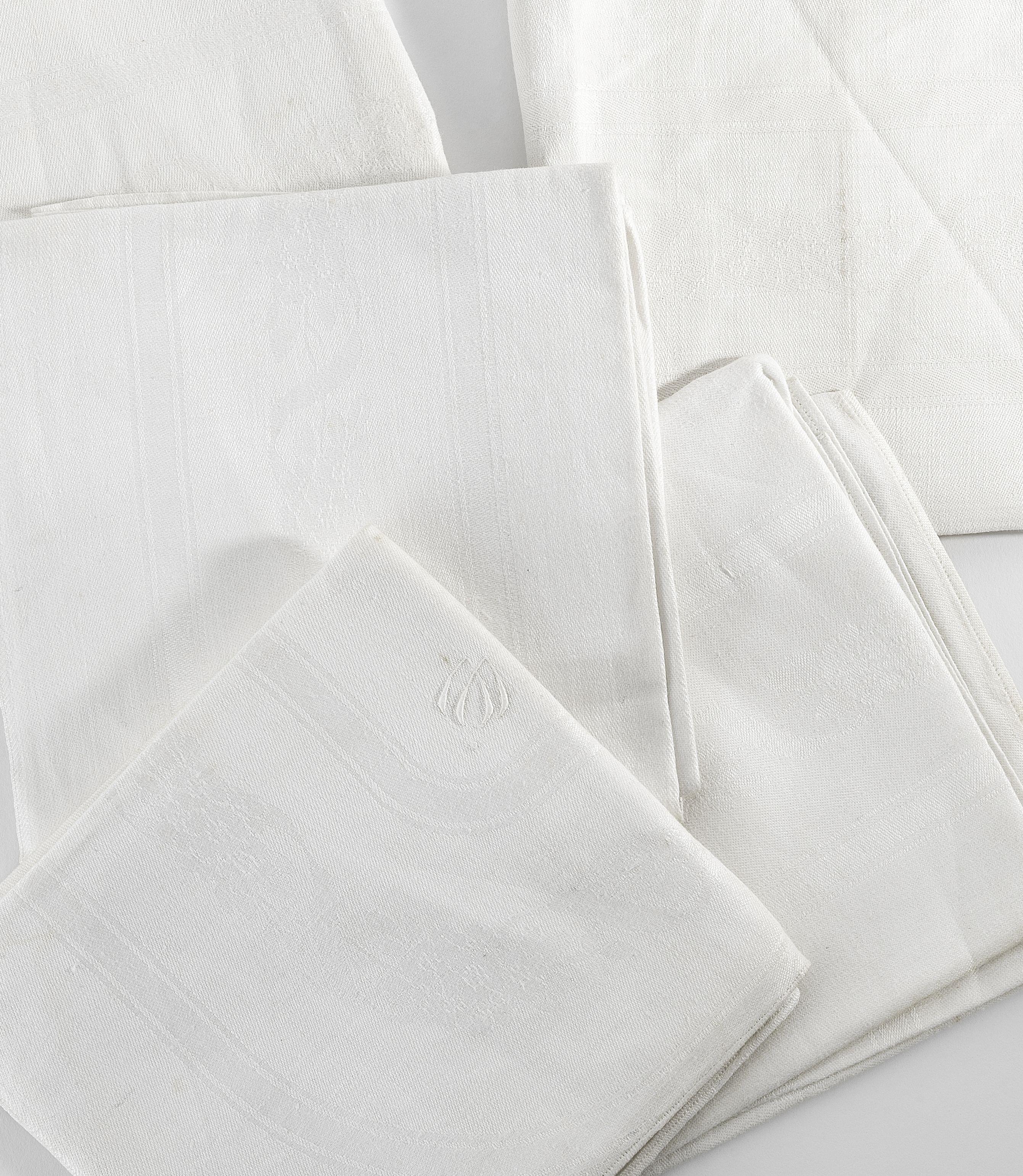4116. Nappe à décor de guirlandes aux chiffres de la reine Marguerite de Savoie, femme du roi Humbert Ier